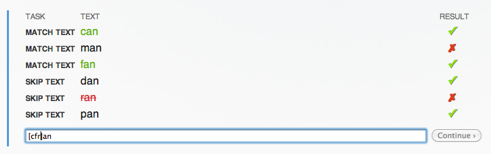 The simplest kind of matching is just entering some text to match. Open the interactive below and type "cat" into the box: