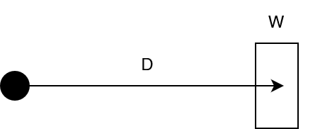 When we write a formula for this, we use D for the distance to the target, and W for the "width" (size) of the target.