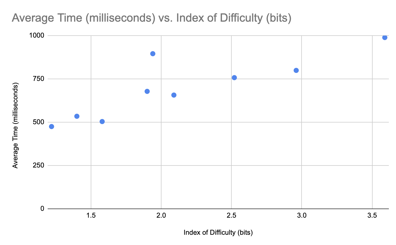 For example, if a new button was placed with an ID of 3.0, the graph indicates that it would take about 850 milliseconds to point at it.